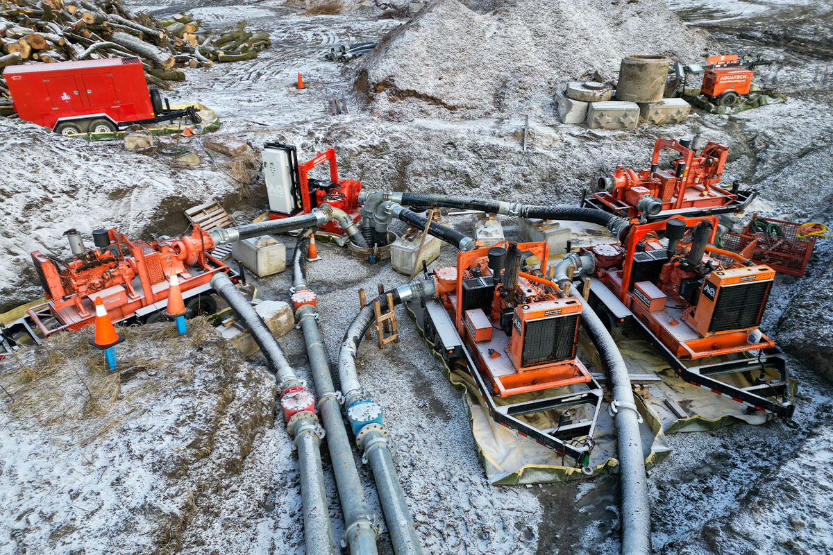 Given the critical nature of the bypass, Aquatech remained on-site to provide 24/7 pump watch for the entire duration of the bypass period. Continuous monitoring ensured steady flows, rapid response to any changing conditions, and precise pump performance.